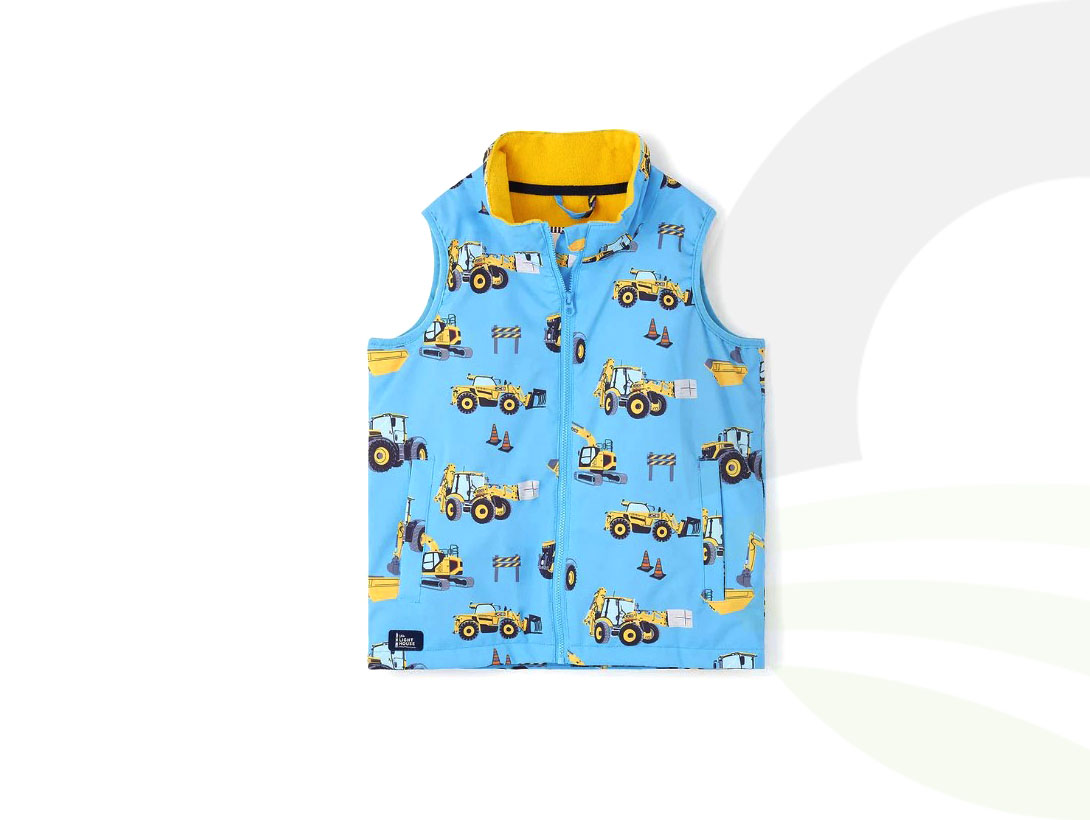 Finished with a fun JCB print, this lightweight waterproof gilet is perfect for those in-between weather days.