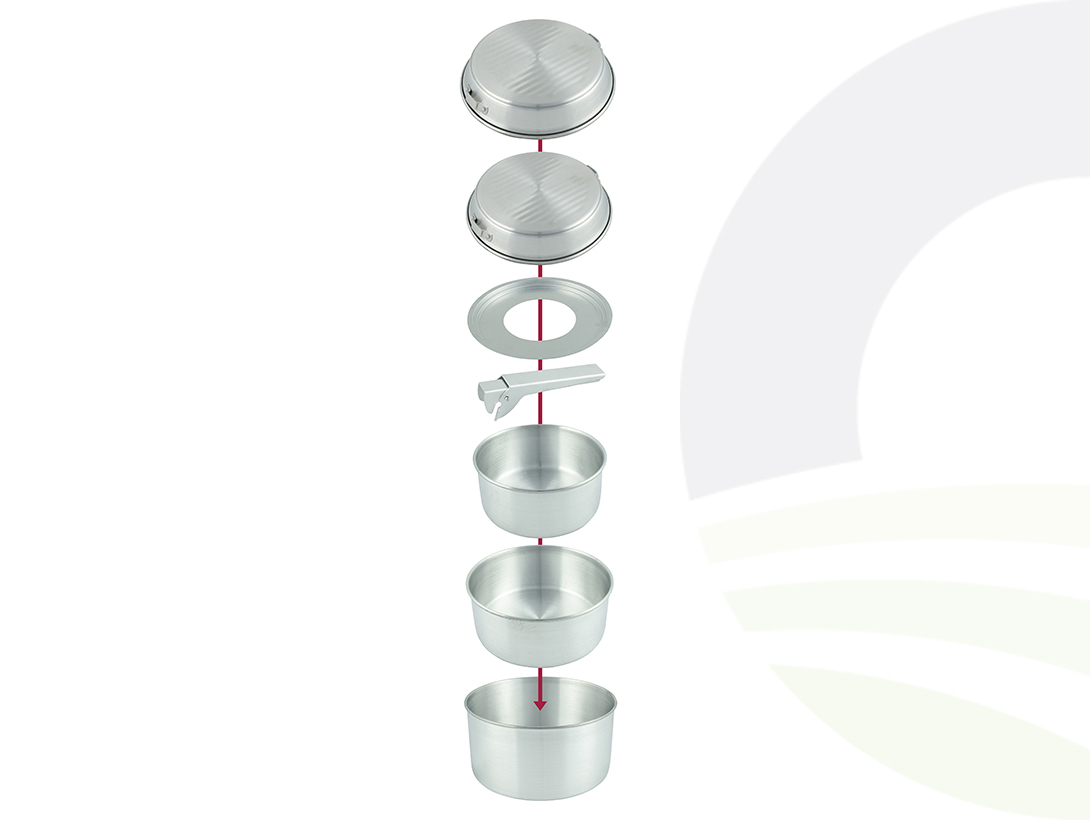 The Bo Camp Safari Pan Set is an extremely compact, nesting pan set including everything you could need for your cooking away from home.