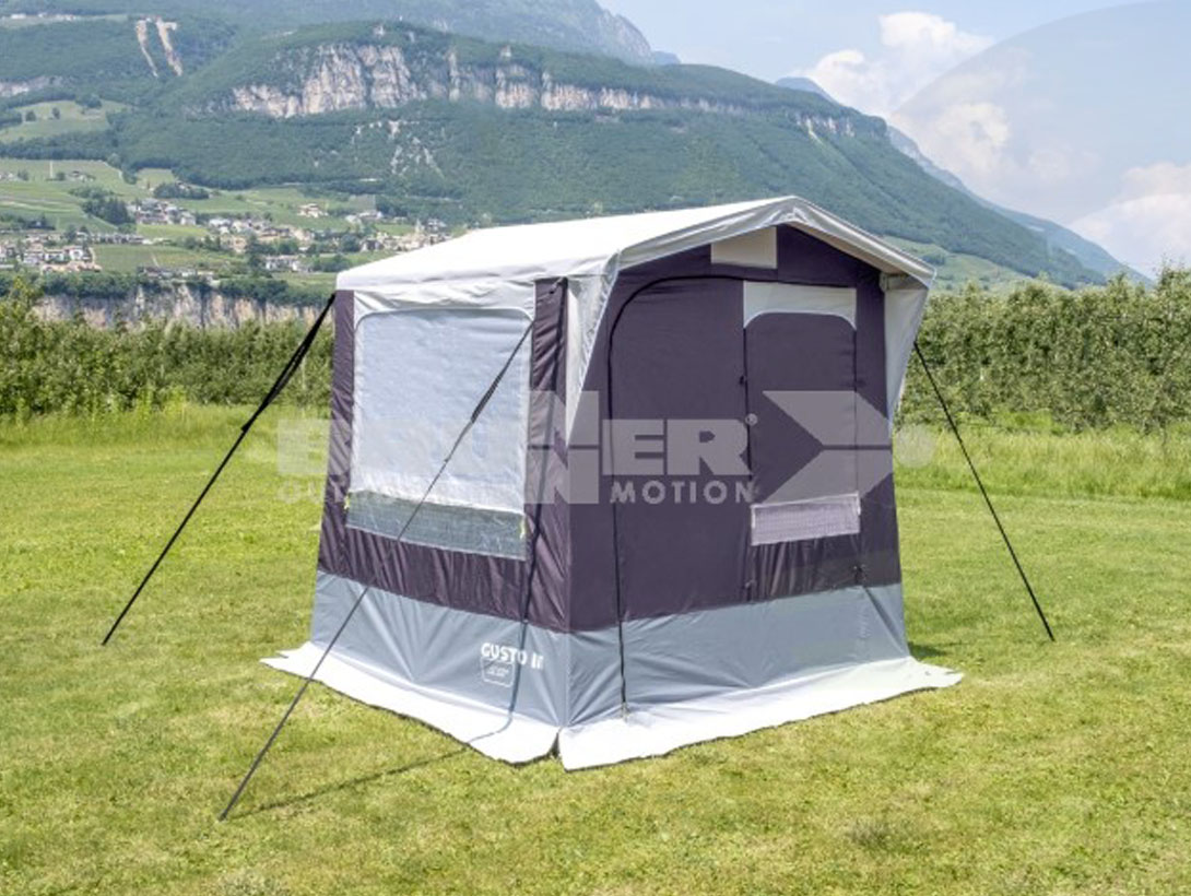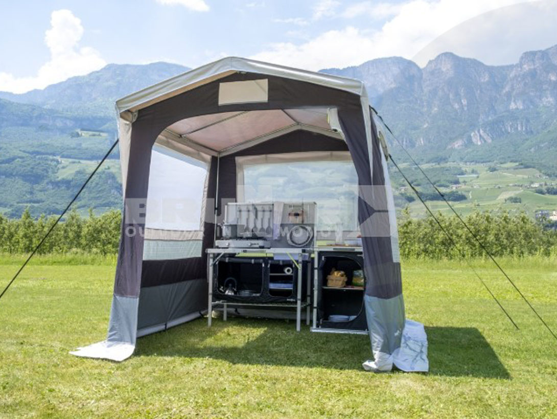 The Brunner Gusto NG Cooking Tent with gabled roof is the ultimate solution for outdoor chefs and camping enthusiasts who want a comfortable, practical cooking shelter.