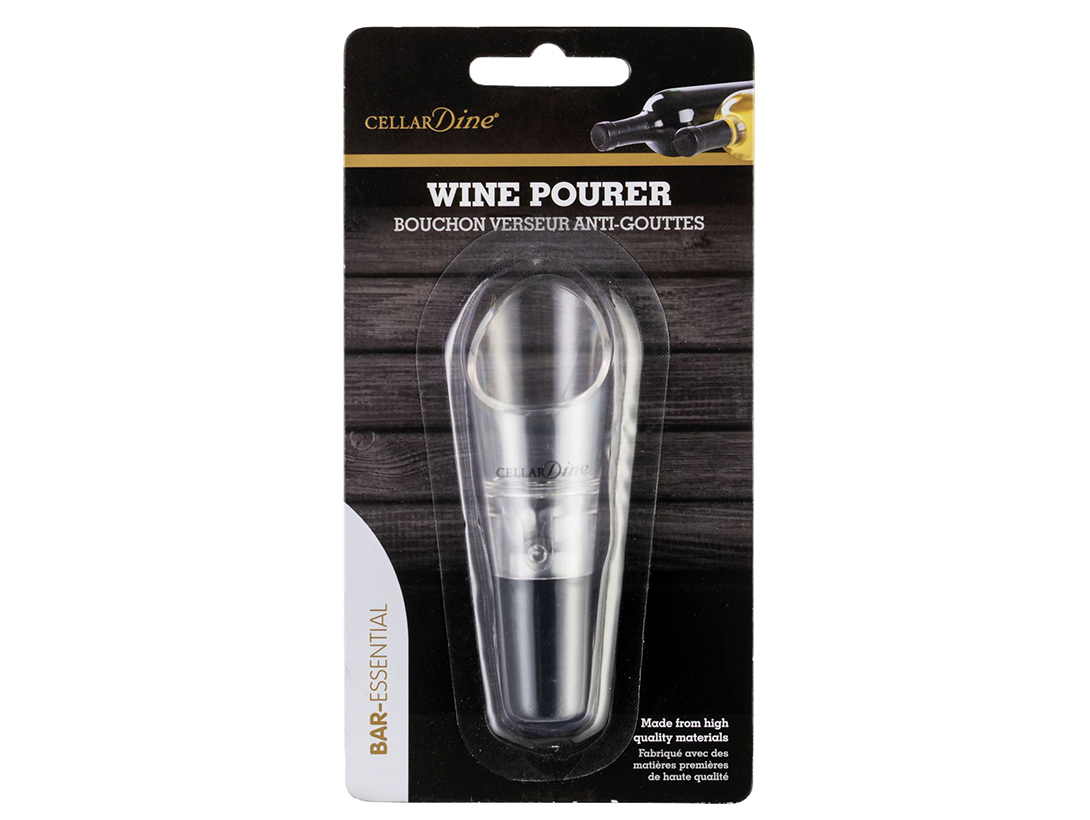 The CellarDine wine pourer is designed to allow a steady flow of wine pouring directly from the bottle to the glass without spillage.