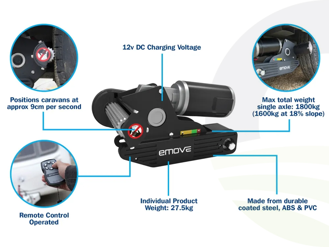 Like all Emove caravan movers, it is significantly lighter than its competitors. Developed and refined over the last ten years, you can buy with confidence knowing that you are receiving the highest standard of product.