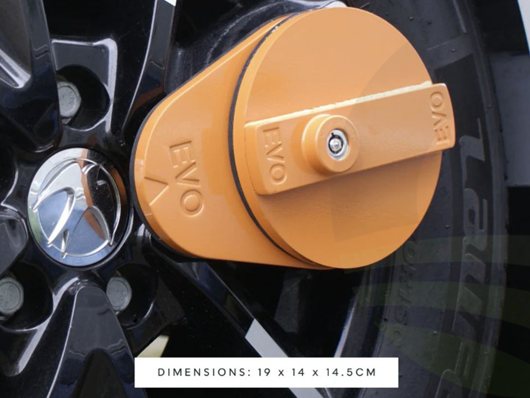 Constructed from heavy-duty 20mm steel, the EVO Wheel Lock provides a strong physical barrier and a highly visible theft deterrent.