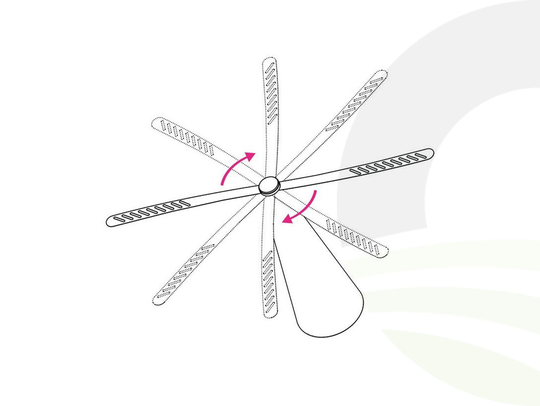 The device features soft, flexible blades that rotate quietly, creating a gentle breeze to ward off flies.