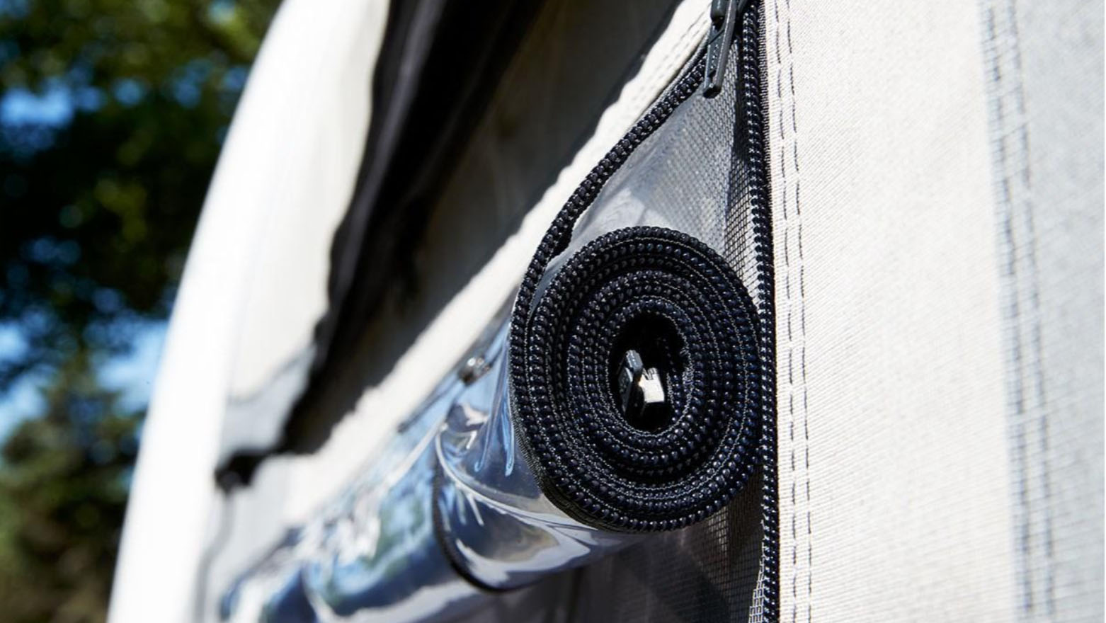 For a natural inflow of daylight, and to ensure that the awning is a light and accommodating place to spend time, the Ambassador Dawn has large, panelled panorama windows in the front. This awning also comes as standard with a draught skirt, wheel arch cover, typhoon storm straps and a veranda bar that can be fitted on the front or side.