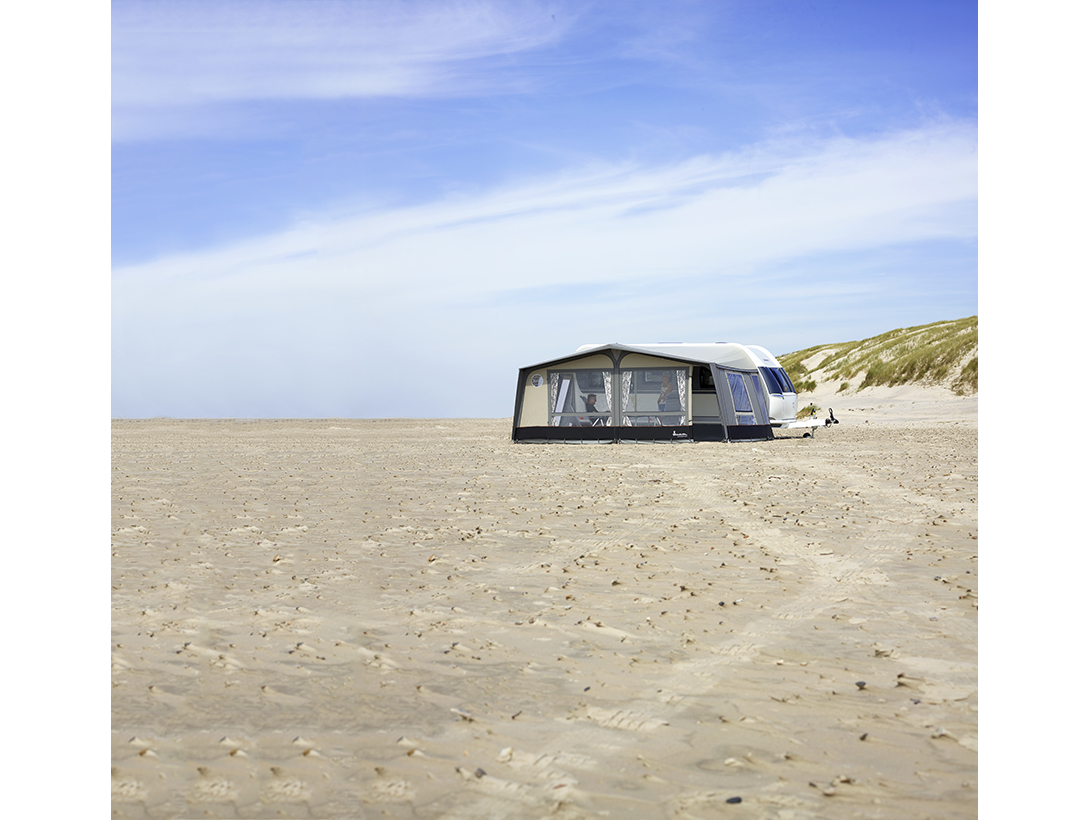 For a natural inflow of daylight, and to ensure that the awning is a light and accommodating place to spend time, the Commodore Dawn has large, panelled panorama windows in the front. This awning also comes as standard with curtains, a draught skirt, wheel arch cover, typhoon storm straps and a veranda pole that can be fitted on the front or side.