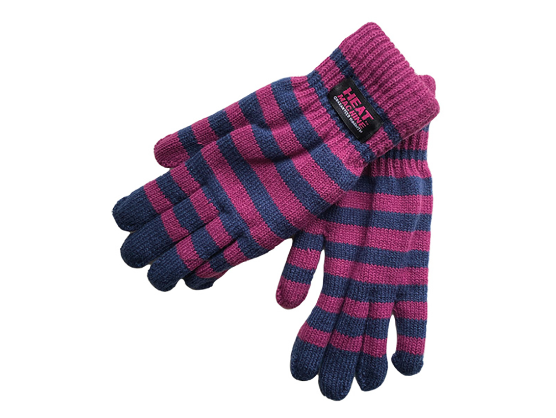 These ladies’ gloves from heat machine, are a high quality, 100% acrylic thermal insulated glove with a striped design.
