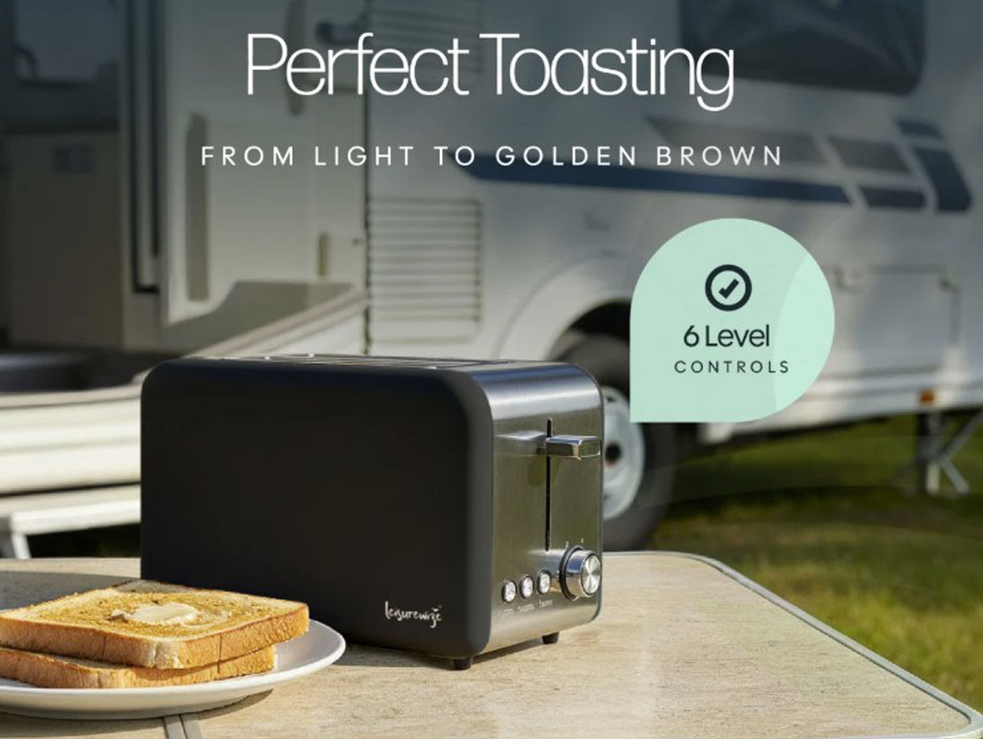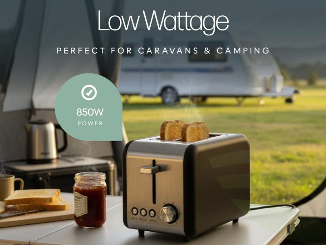 The Sleek Mains Electric Toaster combines modern styling with reliable performance, making it ideal for caravans, motorhomes, campervans, and home kitchens.