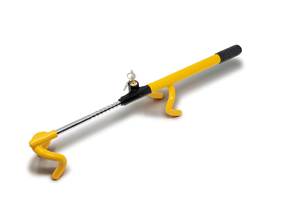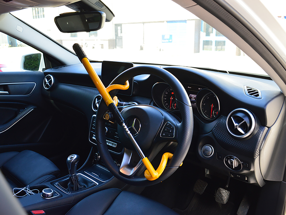 It is a high visible deterrent designed to go over your steering wheel so that it cannot be used. This steering wheel lock is simple to use and fit, simply unlock, extend the bar, place through the middle of the steering wheel, pull to the correct size and lock with the key.
