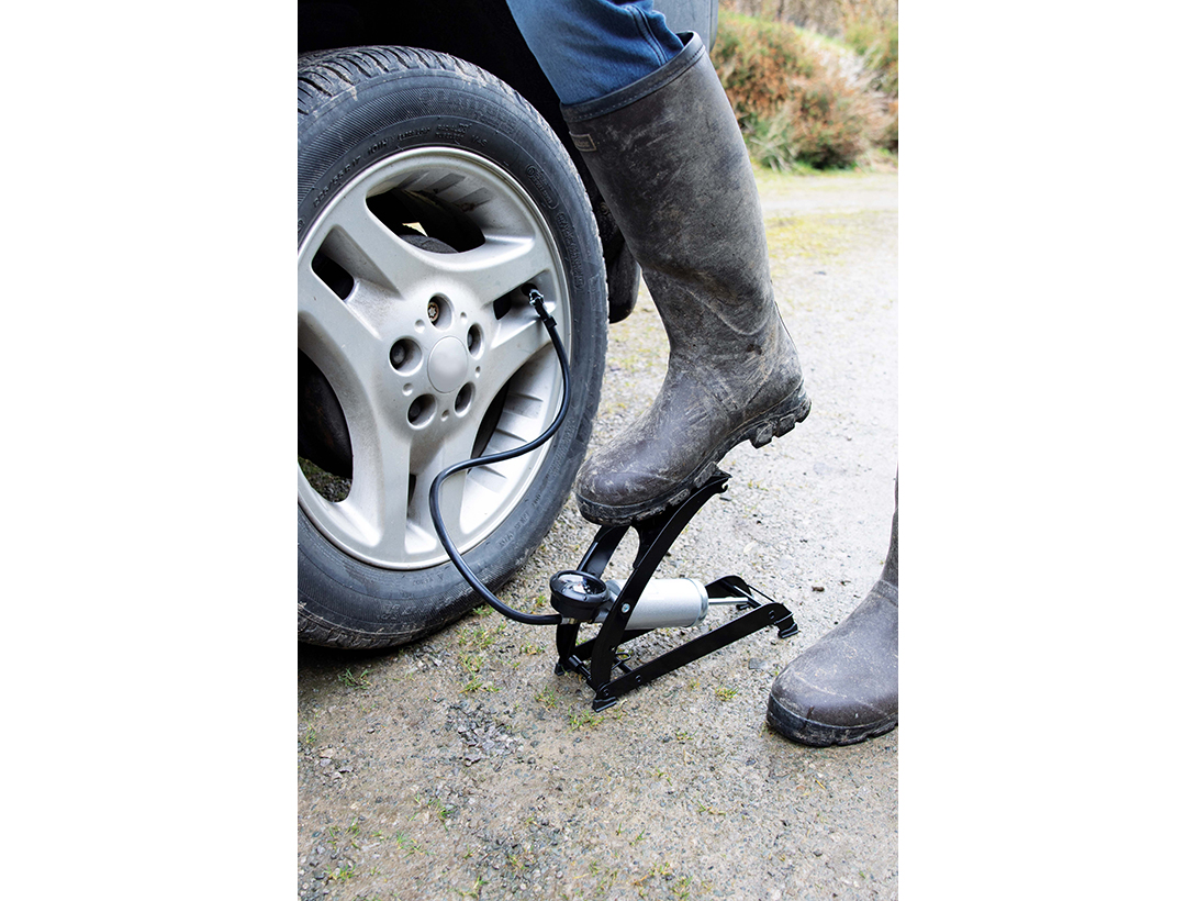 - Heavy duty double foot pump suitable for: cars, motorcycles, bicycles, air mattresses and sports balls