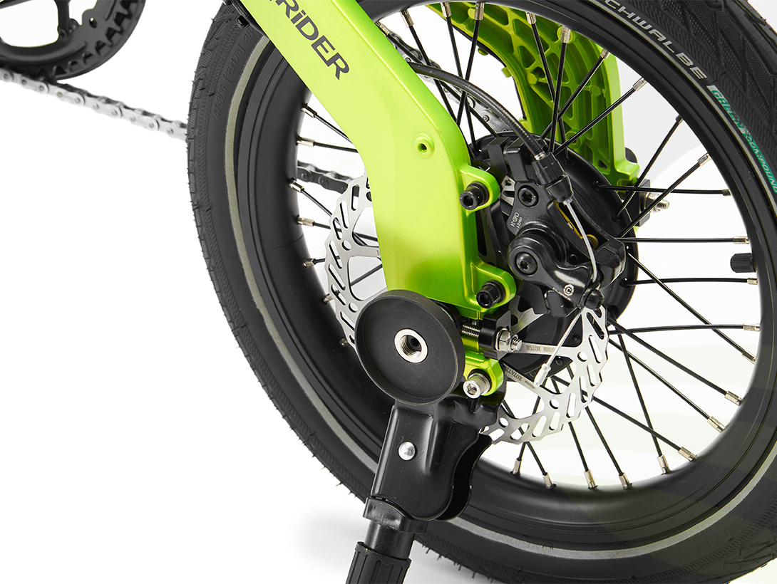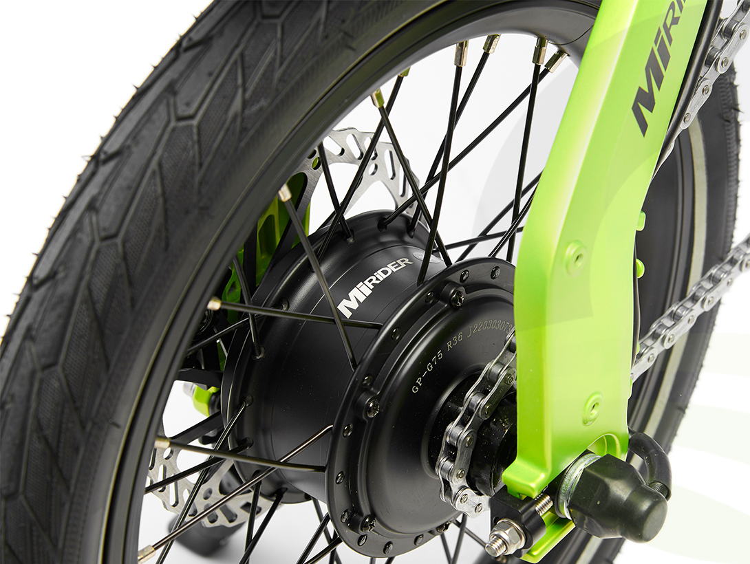 - Wheels: 16” wheels with aero rims and a MiRiDER designed 1 piece front hub