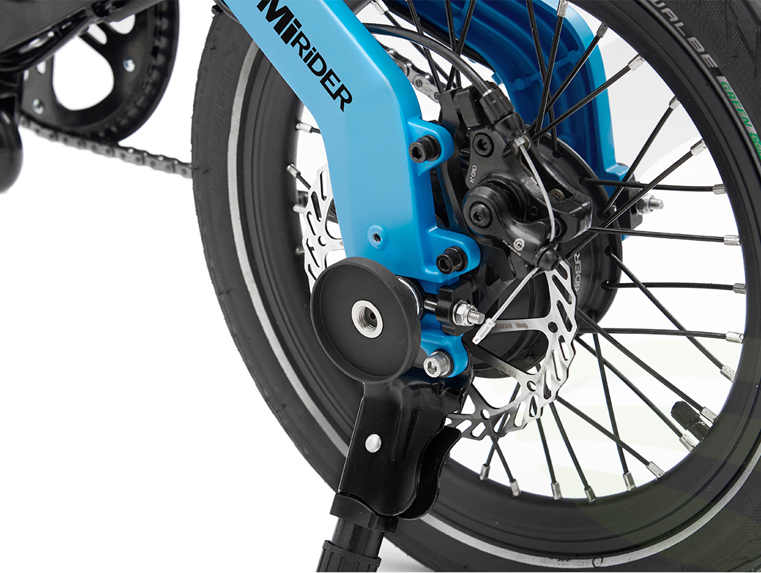 - Wheels: 16” wheels with aero rims and a MiRiDER designed 1 piece front hub