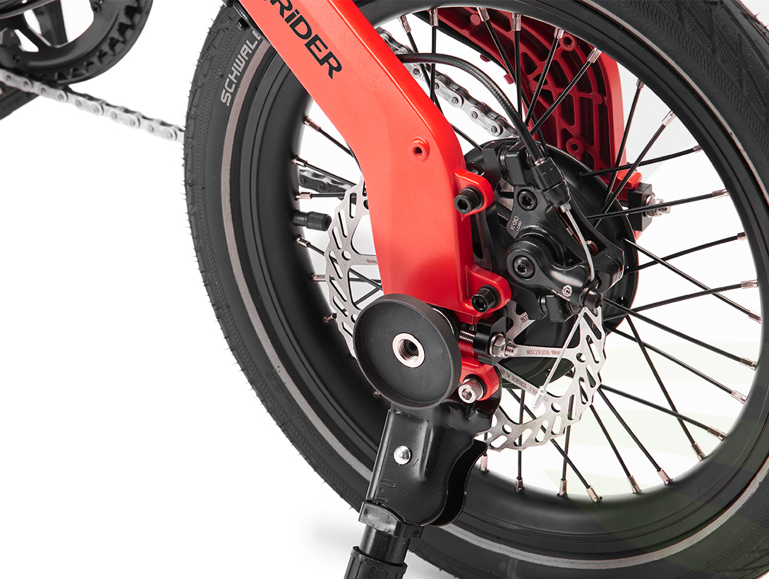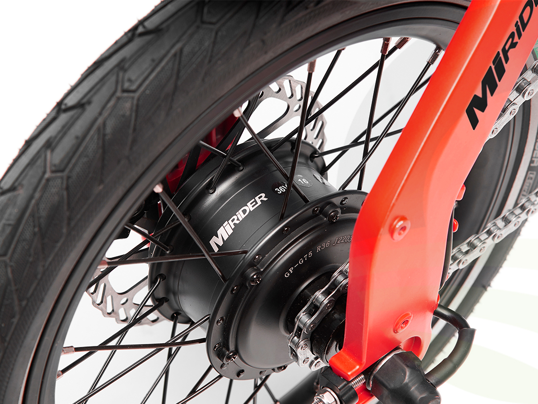 - Wheels: 16” wheels with aero rims and a MiRiDER designed 1 piece front hub