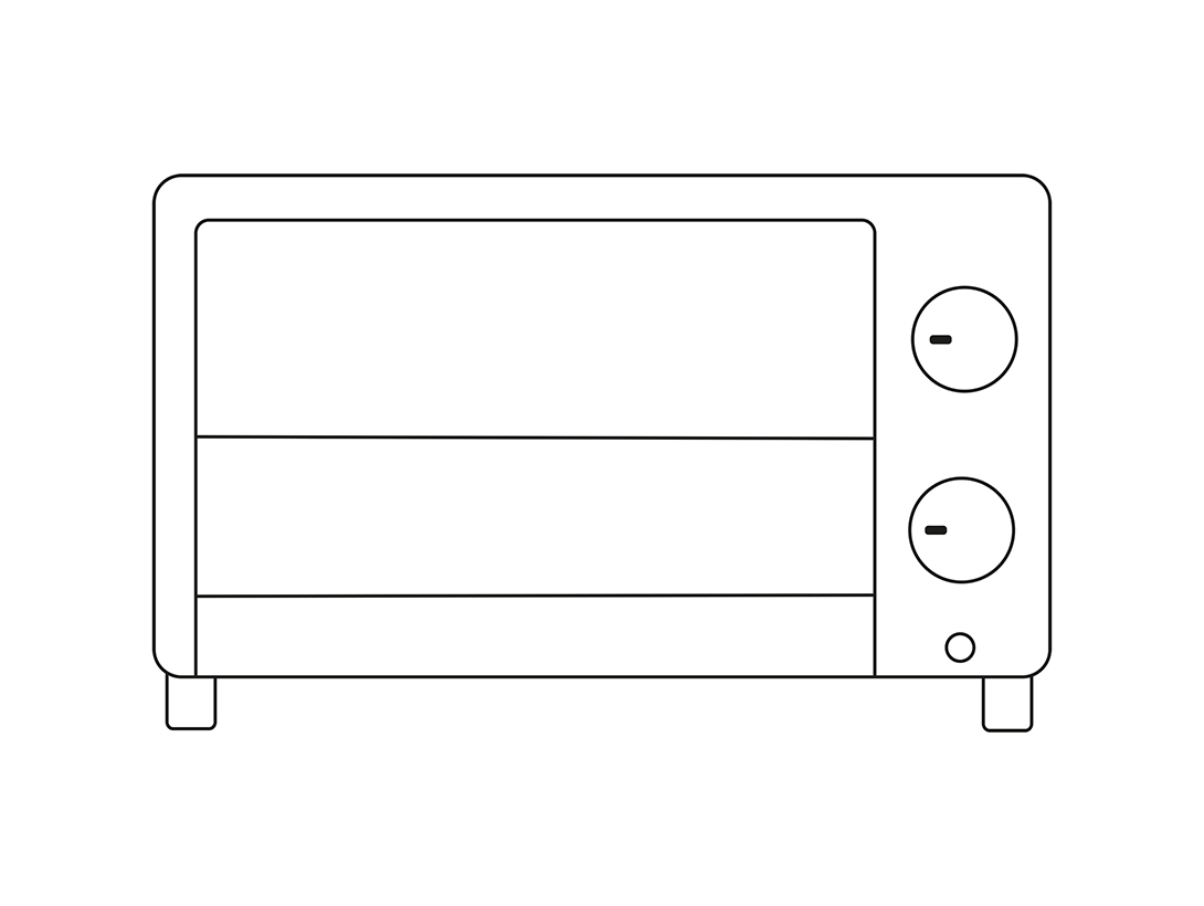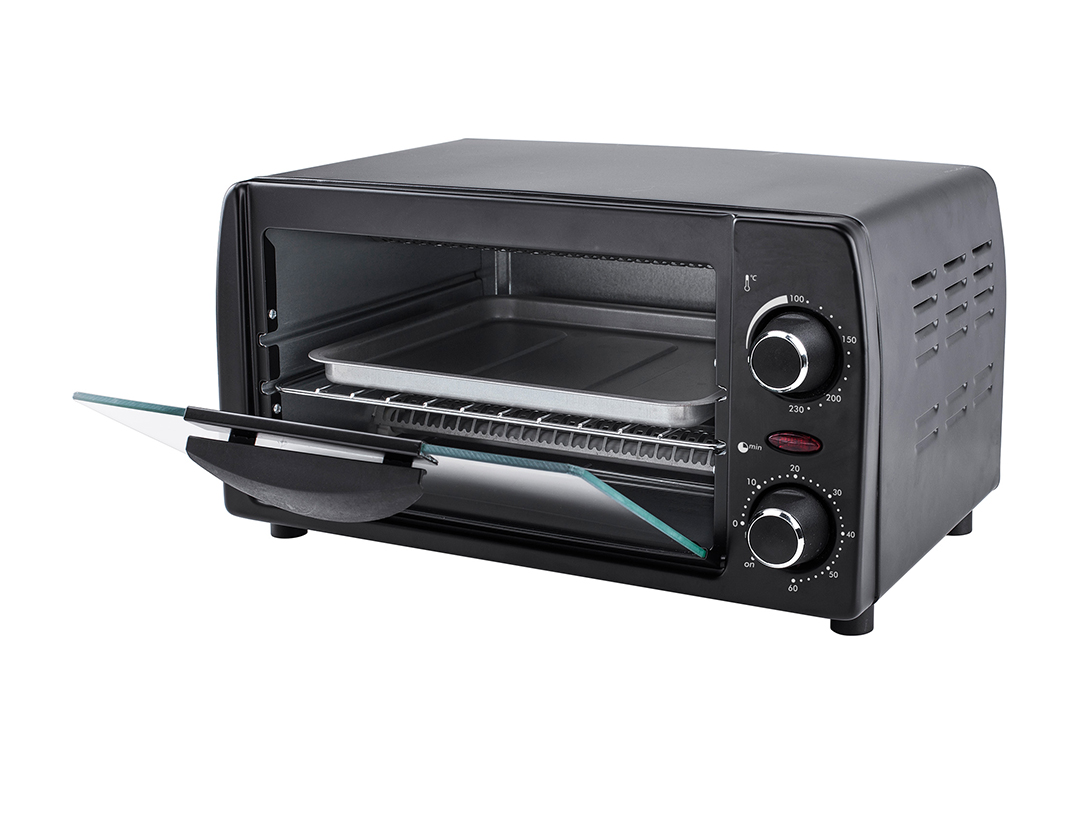 Included in the box is a mini roasting tray to use when cooking vegetables or for catching drips from the rack. It includes a handle that makes sliding out the tray or rack effortless and helps you to avoid burning yourself. The casing is double layered and stays relatively cool so there is no burning risk by touching the outside - keeping you and your family safe.