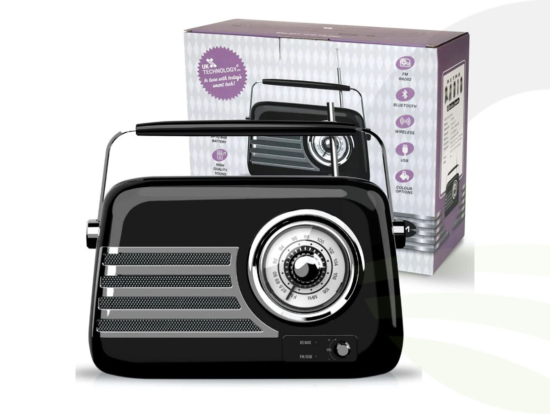 Take a nostalgic journey with the Retro Radio from UK Technology! This device seamlessly blends the vintage charm of the American 50s and 60s with the convenience of modern technology. Stream your favorite tunes wirelessly via Bluetooth or easily tune in to FM radio using the classic dial.