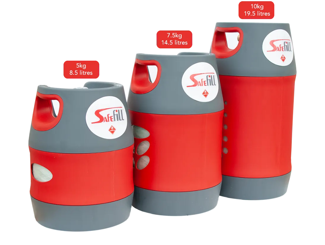 The Safefill cylinders are reusable, refillable, and lightweight making them a great alternative to exchange bottles.