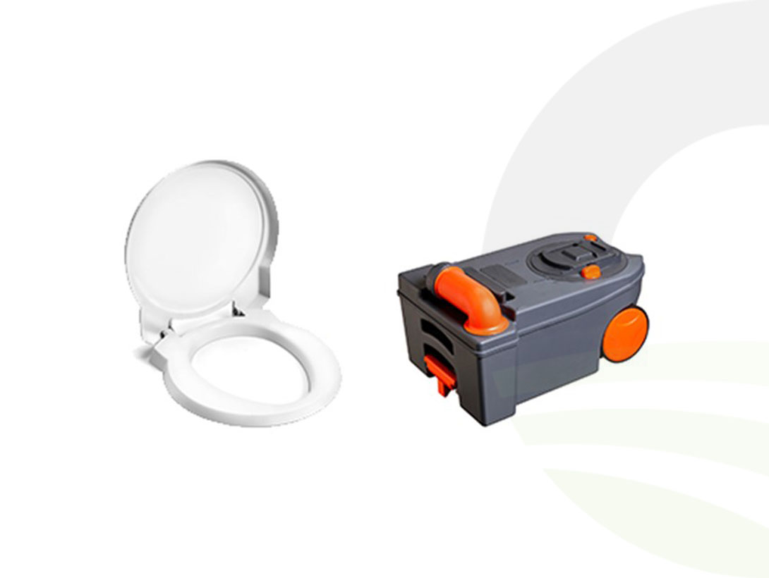 - Two piece kit: Waste holding cassette tank with wheels/ Toilet seat and lid