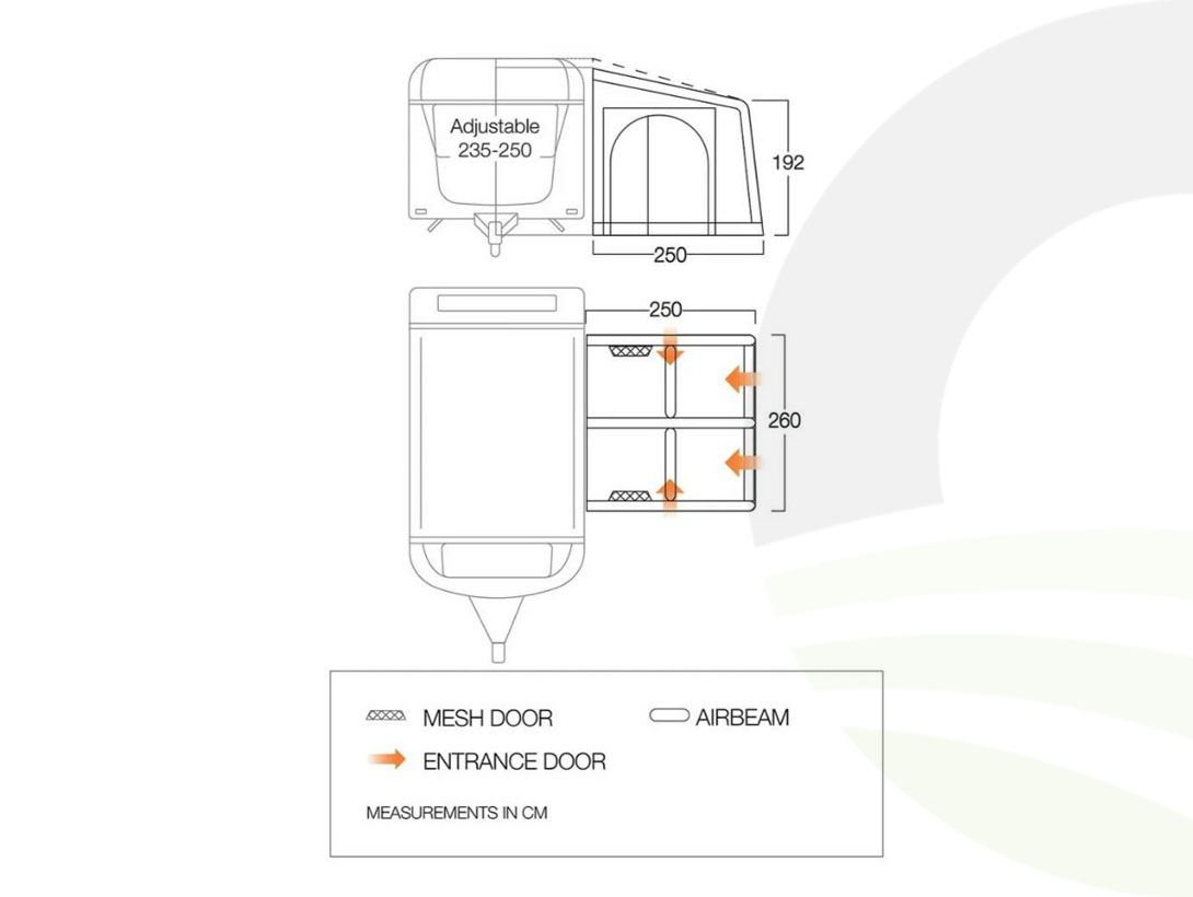 Take in all-round views and enjoy the outdoors from the comfort of your awning with the large Diamond Clear Windows, or adjust the zipped curtains for added privacy.