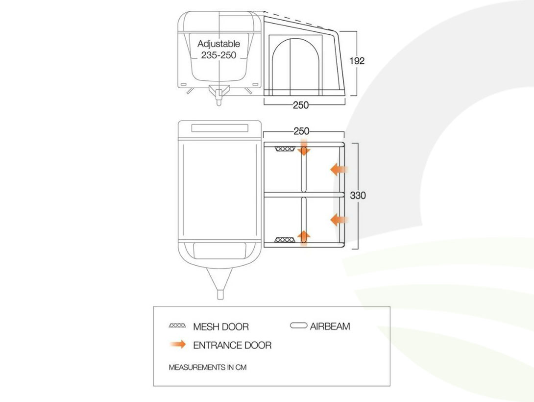 Take in all-round views and enjoy the outdoors from the comfort of your awning with the large Diamond Clear Windows, or adjust the zipped curtains for added privacy.