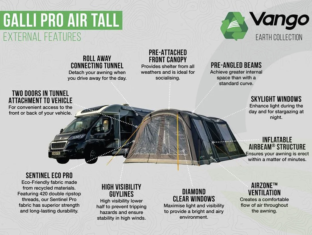 The Vango Galli Pro Air is designed for campers who want a spacious, versatile living area on the road.