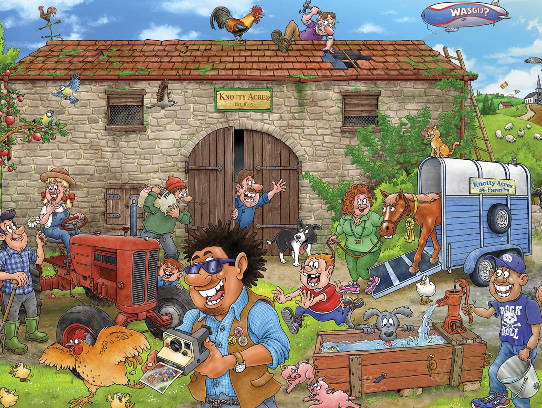 Step into the chaotic charm of Knotty Acres with Wasgij Destiny 30: Harvesting Happiness! A hilarious 1000-piece jigsaw puzzle that will test your imagination.