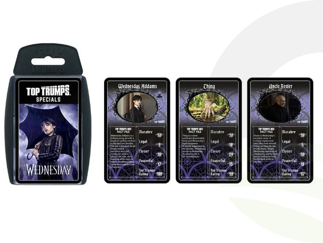 This Top Trumps card game brings the iconic Netflix TV show to life, featuring 30 of your favourite characters, including the scarily clever Wednesday Addams, Enid Sinclair, and Thing.