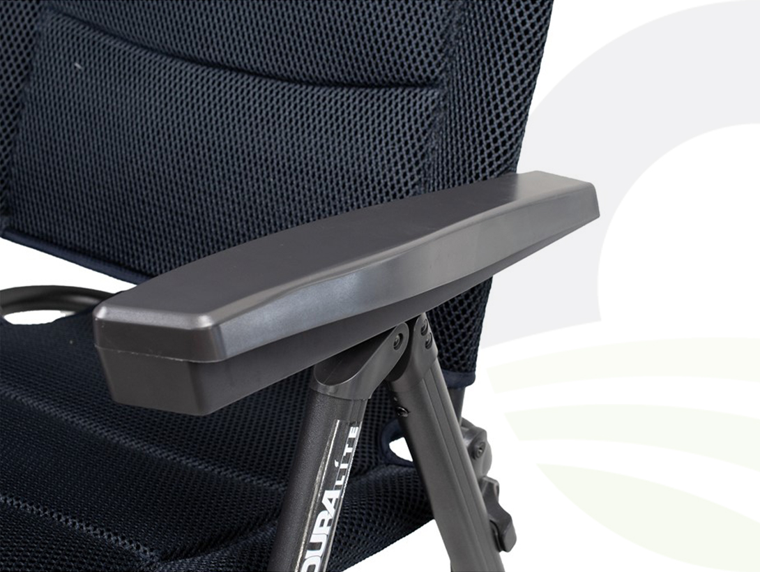 At its core is the DuraLite frame, a patented alloy that’s lighter and stronger than aluminium, ensuring exceptional stability without added weight. Paired with the exclusive DuraDore 3D Mesh fabric, the chair offers superior breathability, rapid drying, and long-lasting durability thanks to its padded, water-permeable fibreglass weave that resists mould and retains comfort in all weather conditions.