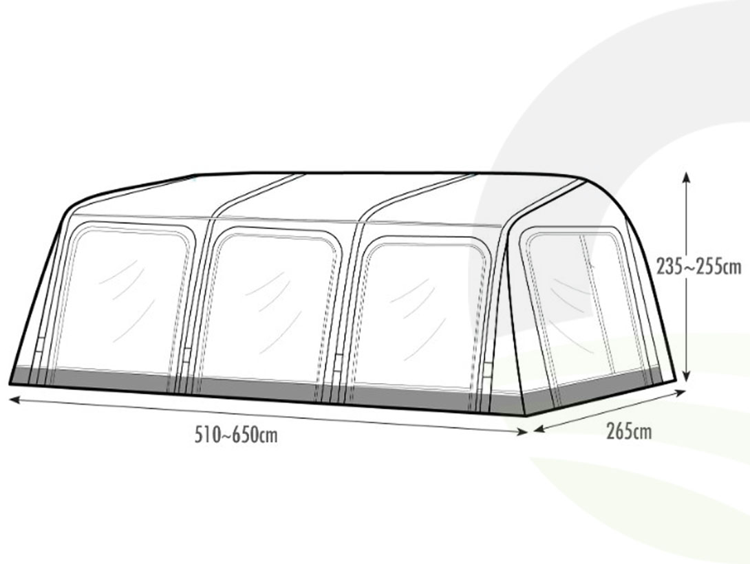 As a full awning, it runs the complete length of your caravan, allowing full access to windows, doors, and service flaps while creating a roomy interior with generous headroom around 185cm at the front.