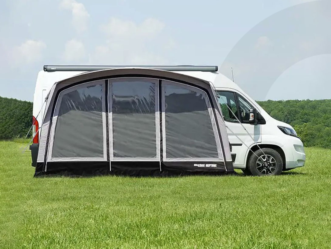 The Westfield Neptune 2.0 is a premium driveaway air awning designed specifically for motorhomes and campervans with higher awning rails (240–320cm).