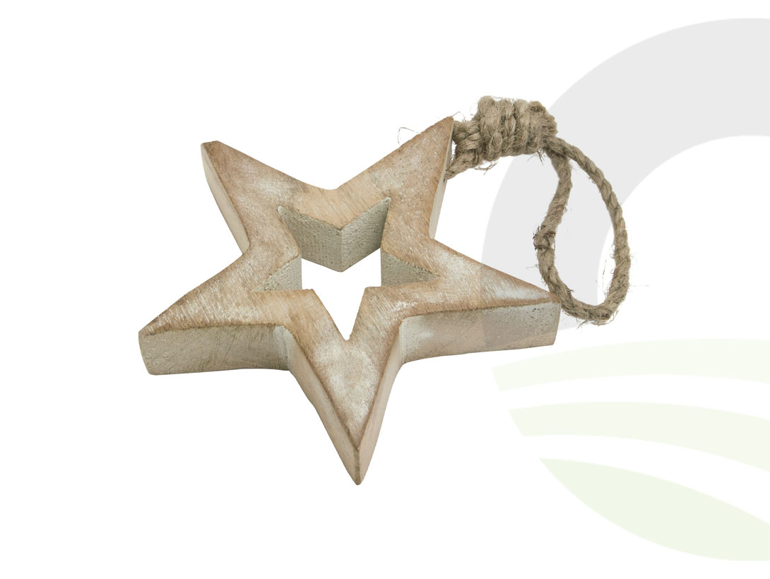 Bring a subtle, rustic charm into any display with this beautifully crafted Wooden Hanging Star Decoration.